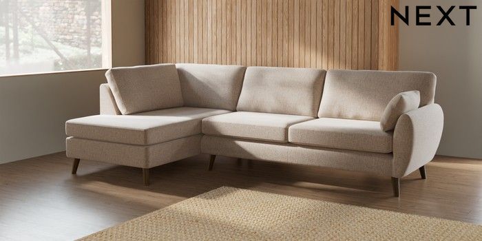7.2.6 Buy Wilson Large Corner Chaise - Left Hand Multi Weave Mid Natural Retro Tapered - Mid from the Next UK online shop Click here to use our accessible website