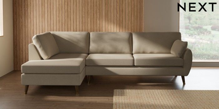 7.3.1 Buy Wilson Large Corner Chaise - Left Hand Natural Mix Light Natural Low Retro Tapered Metal Cap - Mid from the Next UK online shop