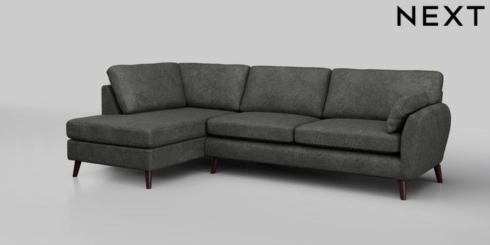 6.12.1 Buy Wilson Large Corner Chaise - Left Hand Plush Chenille Dark Grey Retro Tapered - Dark Brown from the Next UK online shop Click here to use our accessible website