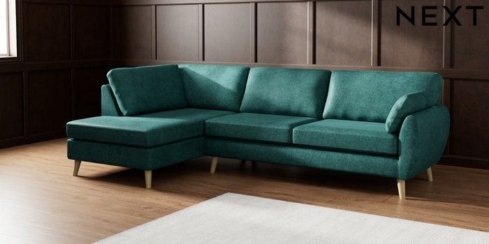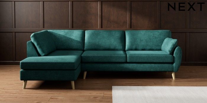 7.3.1 Buy Wilson Large Corner Chaise - Left Hand Plush Chenille Dark Teal Green Retro Tapered - Light from the Next UK online shop Click here to use our accessible website