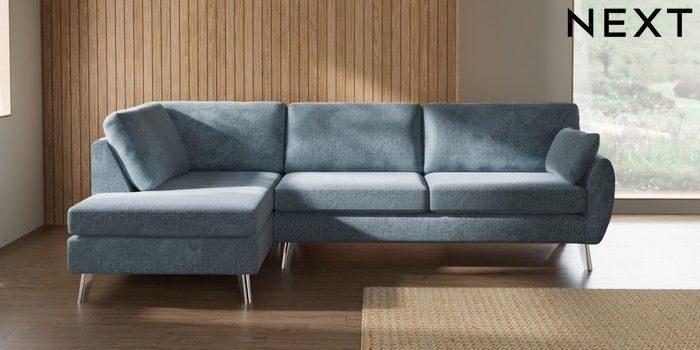 7.3.1 Buy Wilson Large Corner Chaise - Left Hand Plush Chenille Light Blue Metal Tapered - Chrome from the Next UK online shop