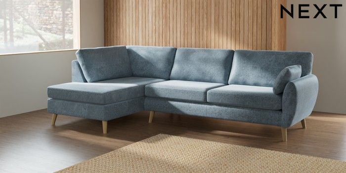 7.2.6 Buy Wilson Large Corner Chaise - Left Hand Plush Chenille Light Blue Retro Tapered - Light from the Next UK online shop Click here to use our accessible website