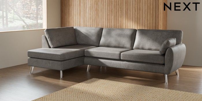 7.3.1 Buy Wilson Large Corner Chaise - Left Hand Plush Chenille Light Grey Metal Tapered - Chrome from the Next UK online shop Click here to use our accessible website