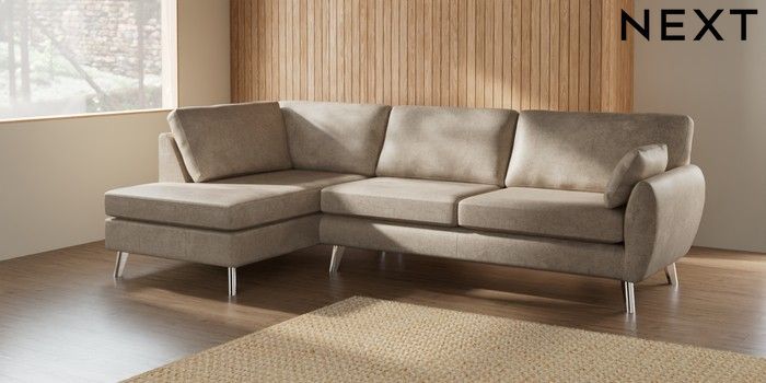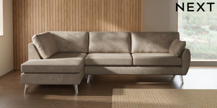 7.3.1 Buy Wilson Large Corner Chaise - Left Hand Plush Chenille Light Natural Metal Tapered - Chrome from the Next UK online shop