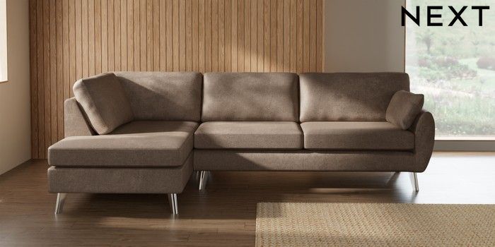 7.3.1 Buy Wilson Large Corner Chaise - Left Hand Plush Chenille Mid Natural Metal Tapered - Chrome from the Next UK online shop