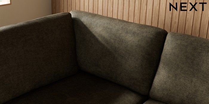 7.3.1 Buy Wilson Large Corner Chaise - Left Hand Plush Chenille Moss Green Metal Tapered - Chrome from the Next UK online shop