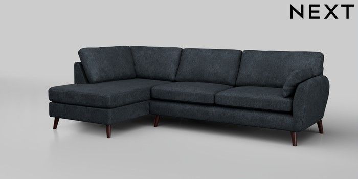 6.12.1 Buy Wilson Large Corner Chaise - Left Hand Plush Chenille Slate Blue Retro Tapered - Dark Brown from the Next UK online shop Click here to use our accessible website