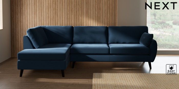 7.3.1 Buy Wilson Large Corner Chaise - Left Hand Plush Velvet Easy Clean Airforce Blue Retro Tapered - Dark from the Next UK online shop