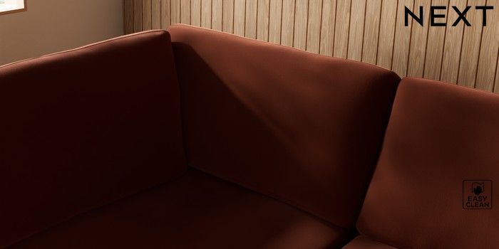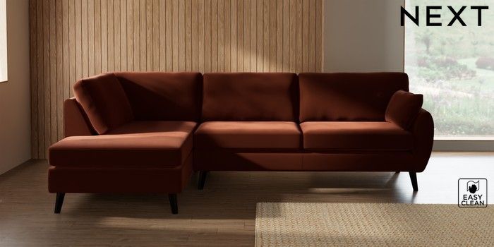 7.3.1 Buy Wilson Large Corner Chaise - Left Hand Plush Velvet Easy Clean Ginger Orange Retro Tapered - Dark from the Next UK online shop