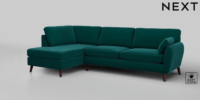 6.12.1 Buy Wilson Large Corner Chaise - Left Hand Plush Velvet Easy Clean Juniper Green Retro Tapered - Dark Brown from the Next UK online shop Click here to use our accessible website