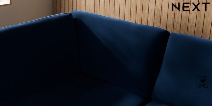 7.3.1 Buy Wilson Large Corner Chaise - Left Hand Plush Velvet Easy Clean Navy Blue Retro Tapered - Mid from the Next UK online shop