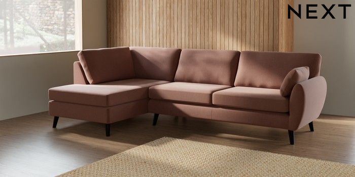 7.2.10 Buy Wilson Large Corner Chaise - Left Hand Relaxed Linen Look Light Rust Brown Retro Tapered - Dark from the Next UK online shop Click here to use our accessible website