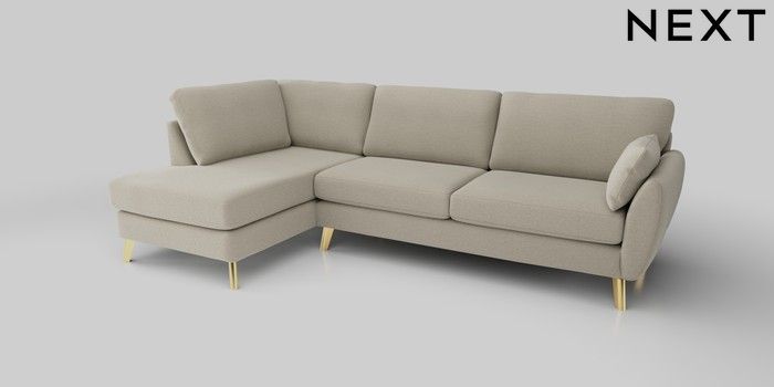 6.12.1 Buy Wilson Large Corner Chaise - Left Hand Ripple Chenille Light Natural Metal Tapered - Gold from the Next UK online shop Click here to use our accessible website
