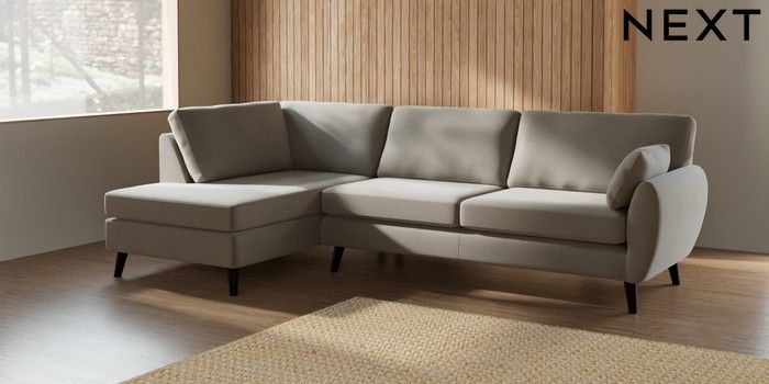 7.2.10 Buy Wilson Large Corner Chaise - Left Hand Ripple Chenille Light Natural Retro Tapered - Dark from the Next UK online shop Click here to use our accessible website