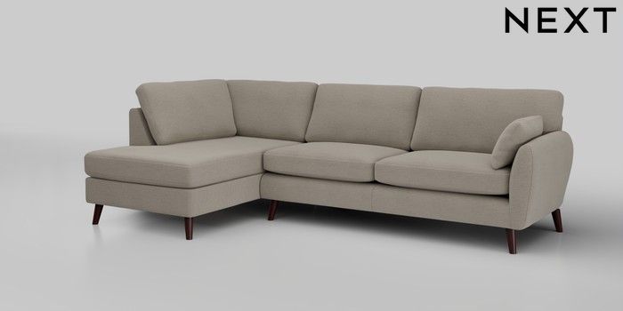 6.12.1 Buy Wilson Large Corner Chaise - Left Hand Ripple Chenille Light Natural Retro Tapered - Dark Brown from the Next UK online shop Click here to use our accessible website
