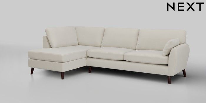 6.12.1 Buy Wilson Large Corner Chaise - Left Hand Ripple Chenille Oyster Retro Tapered - Dark Brown from the Next UK online shop Click here to use our accessible website