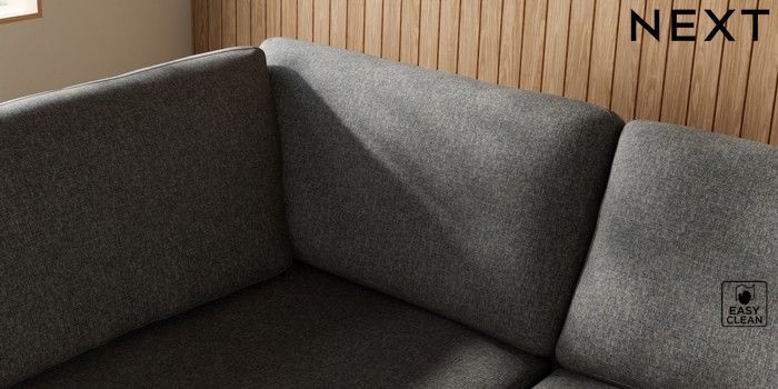 7.3.1 Buy Wilson Large Corner Chaise - Left Hand Tweedy Blend Easy Clean Dark Grey Metal Tapered - Gold from the Next UK online shop