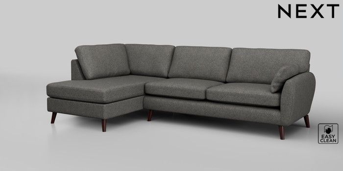 6.12.1 Buy Wilson Large Corner Chaise - Left Hand Tweedy Blend Easy Clean Dark Grey Retro Tapered - Dark Brown from the Next UK online shop Click here to use our accessible website