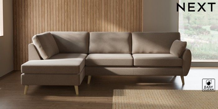 7.3.1 Buy Wilson Large Corner Chaise - Left Hand Tweedy Blend Easy Clean Light Dove Natural Retro Tapered - Light from the Next UK online shop Click here to use our accessible website