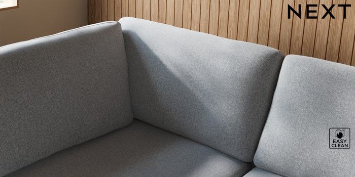 7.3.1 Buy Wilson Large Corner Chaise - Left Hand Tweedy Blend Easy Clean Light Silver Grey Metal Tapered - Chrome from the Next UK online shop