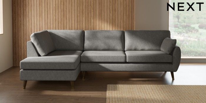 7.3.1 Buy Wilson Large Corner Chaise - Left Hand Tweedy Chenille Mid Grey Low Retro Tapered Metal Cap - Mid from the Next UK online shop