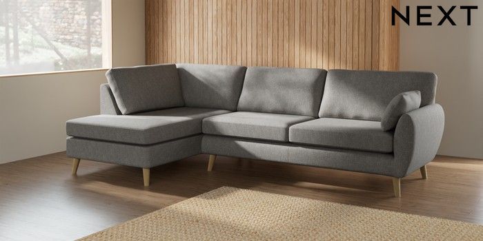 7.3.1 Buy Wilson Large Corner Chaise - Left Hand Tweedy Chenille Mid Grey Retro Tapered - Light from the Next UK online shop Click here to use our accessible website