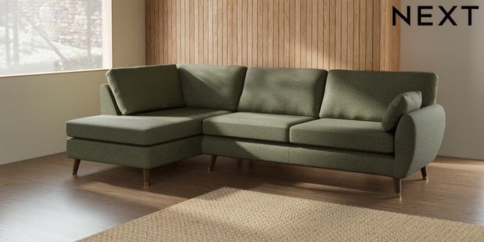 7.3.1 Buy Wilson Large Corner Chaise - Left Hand Tweedy Chenille Mid Moss Green Low Retro Tapered Metal Cap - Mid from the Next UK online shop