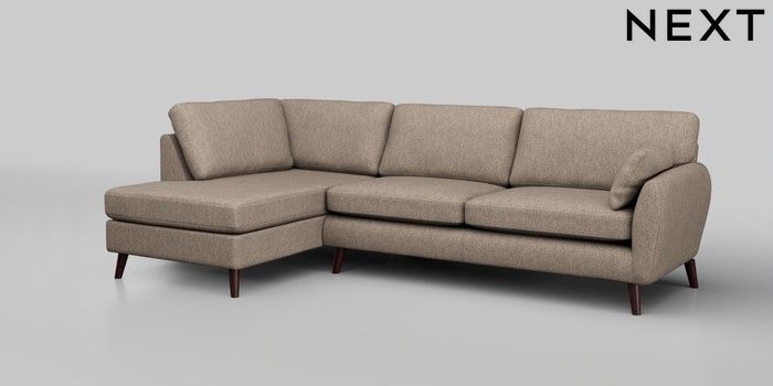6.12.1 Buy Wilson Large Corner Chaise - Left Hand Tweedy Chenille Mid Natural Retro Tapered - Dark Brown from the Next UK online shop Click here to use our accessible website