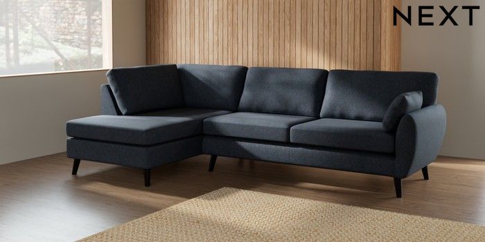 7.3.1 Buy Wilson Large Corner Chaise - Left Hand Tweedy Chenille Navy Blue Retro Tapered - Dark from the Next UK online shop