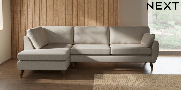 7.3.1 Buy Wilson Large Corner Chaise - Left Hand Tweedy Chenille Oyster Low Retro Tapered Metal Cap - Mid from the Next UK online shop