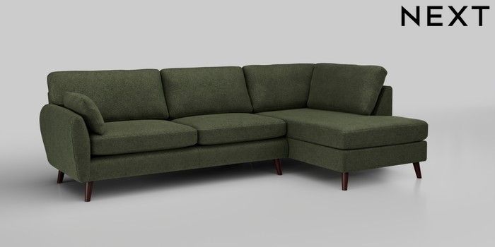 6.12.1 Buy Wilson Large Corner Chaise - Right Hand Boucle Chenille Dark Moss Green Retro Tapered - Dark Brown from the Next UK online shop Click here to use our accessible website