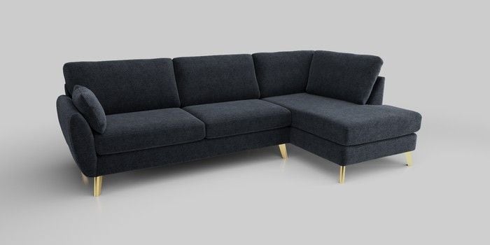 6.12.1 Buy Wilson Large Corner Chaise - Right Hand Boucle Chenille Dark Slate Blue Metal Tapered - Gold from the Next UK online shop Click here to use our accessible website