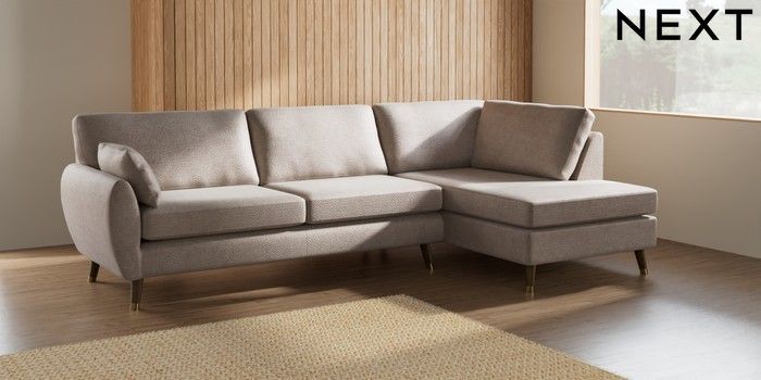 7.3.1 Buy Wilson Large Corner Chaise - Right Hand Boucle Chenille Light Natural Low Retro Tapered Metal Cap - Mid from the Next UK online shop
