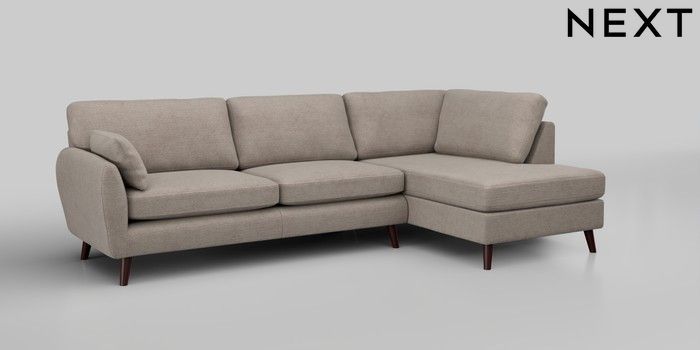 6.12.1 Buy Wilson Large Corner Chaise - Right Hand Boucle Chenille Light Natural Retro Tapered - Dark Brown from the Next UK online shop Click here to use our accessible website