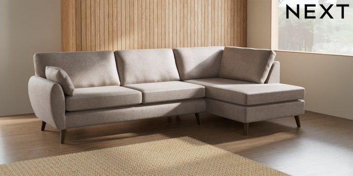 7.3.1 Buy Wilson Large Corner Chaise - Right Hand Boucle Chenille Light Natural Retro Tapered - Mid from the Next UK online shop