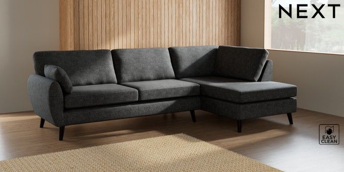 7.3.1 Buy Wilson Large Corner Chaise - Right Hand Boucle Weave Easy Clean Charcoal Grey Retro Tapered - Dark from the Next UK online shop