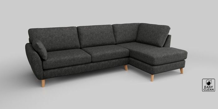 6.12.1 Buy Wilson Large Corner Chaise - Right Hand Boucle Weave Easy Clean Charcoal Grey Retro Tapered - Light from the Next UK online shop Click here to use our accessible website