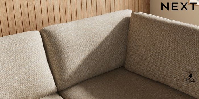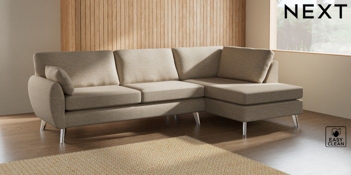 7.3.1 Buy Wilson Large Corner Chaise - Right Hand Boucle Weave Easy Clean Dark Natural Metal Tapered - Chrome from the Next UK online shop
