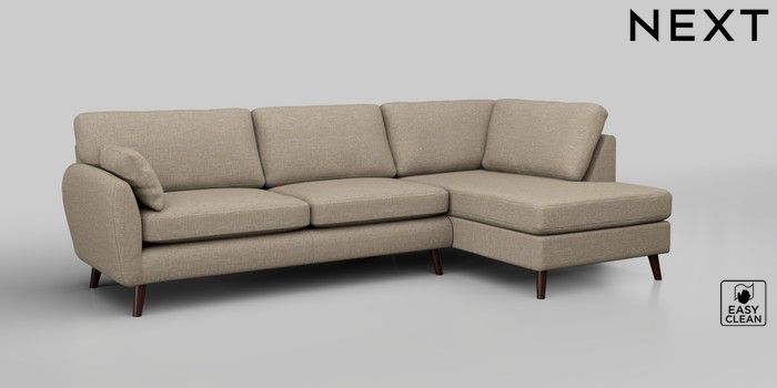 6.12.1 Buy Wilson Large Corner Chaise - Right Hand Boucle Weave Easy Clean Dark Natural Retro Tapered - Dark Brown from the Next UK online shop Click here to use our accessible website