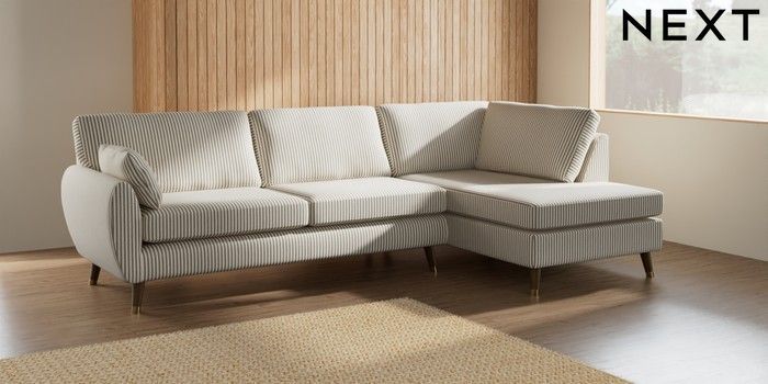 7.2.10 Buy Wilson Large Corner Chaise - Right Hand Chenille Stripe Moss Green Low Retro Tapered Metal Cap - Mid from the Next UK online shop Click here to use our accessible website