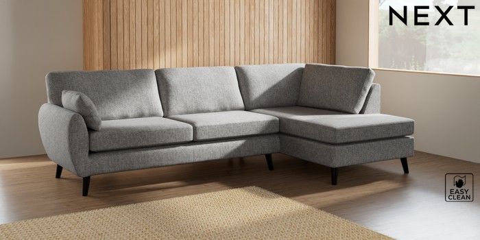 7.3.1 Buy Wilson Large Corner Chaise - Right Hand Chunky Boucle Easy Clean Light Grey Retro Tapered - Dark from the Next UK online shop Click here to use our accessible website