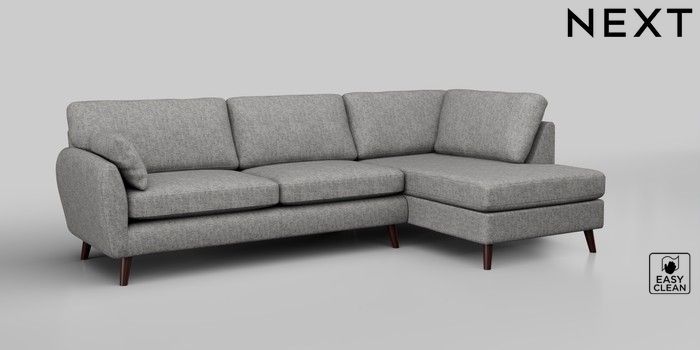 6.12.1 Buy Wilson Large Corner Chaise - Right Hand Chunky Boucle Easy Clean Light Grey Retro Tapered - Dark Brown from the Next UK online shop Click here to use our accessible website