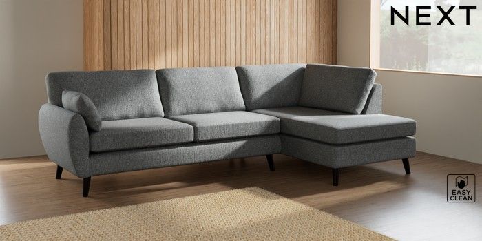 7.3.1 Buy Wilson Large Corner Chaise - Right Hand Chunky Boucle Easy Clean Mid Grey Retro Tapered - Dark from the Next UK online shop