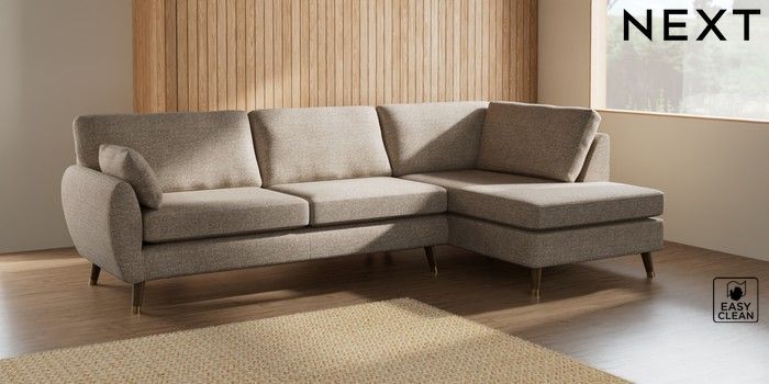 7.3.1 Buy Wilson Large Corner Chaise - Right Hand Chunky Boucle Easy Clean Mid Natural Low Retro Tapered Metal Cap - Mid from the Next UK online shop