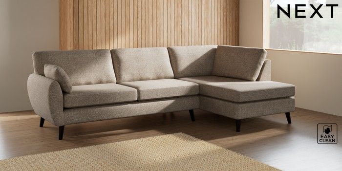 7.3.1 Buy Wilson Large Corner Chaise - Right Hand Chunky Boucle Easy Clean Mid Natural Retro Tapered - Dark from the Next UK online shop
