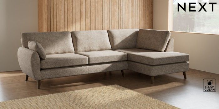 7.3.1 Buy Wilson Large Corner Chaise - Right Hand Chunky Boucle Easy Clean Mid Natural Retro Tapered - Mid from the Next UK online shop
