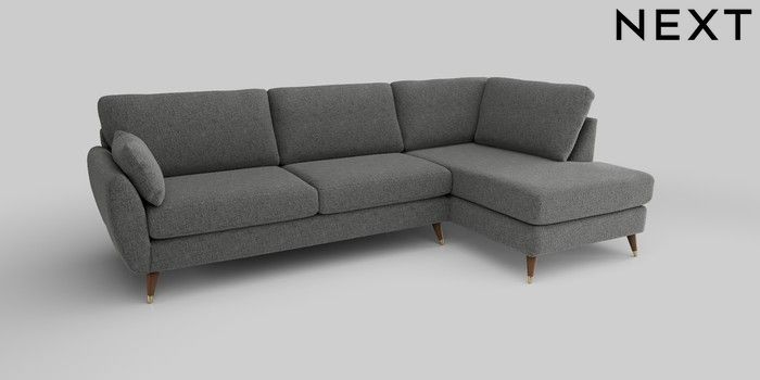 6.12.13 Buy Wilson Large Corner Chaise - Right Hand Chunky Chenille Dark Grey Low Retro Tapered Metal Cap - Mid from the Next UK online shop Click here to use our accessible website