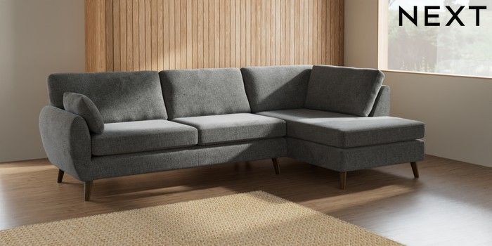 7.3.1 Buy Wilson Large Corner Chaise - Right Hand Chunky Chenille Dark Grey Retro Tapered - Mid from the Next UK online shop