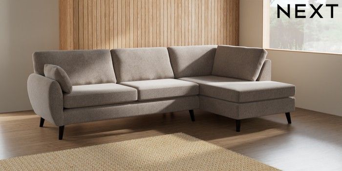 7.3.1 Buy Wilson Large Corner Chaise - Right Hand Chunky Chenille Light Dove Retro Tapered - Dark from the Next UK online shop Click here to use our accessible website
