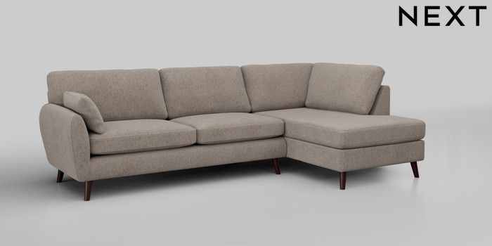 6.12.1 Buy Wilson Large Corner Chaise - Right Hand Chunky Chenille Light Dove Retro Tapered - Dark Brown from the Next UK online shop Click here to use our accessible website